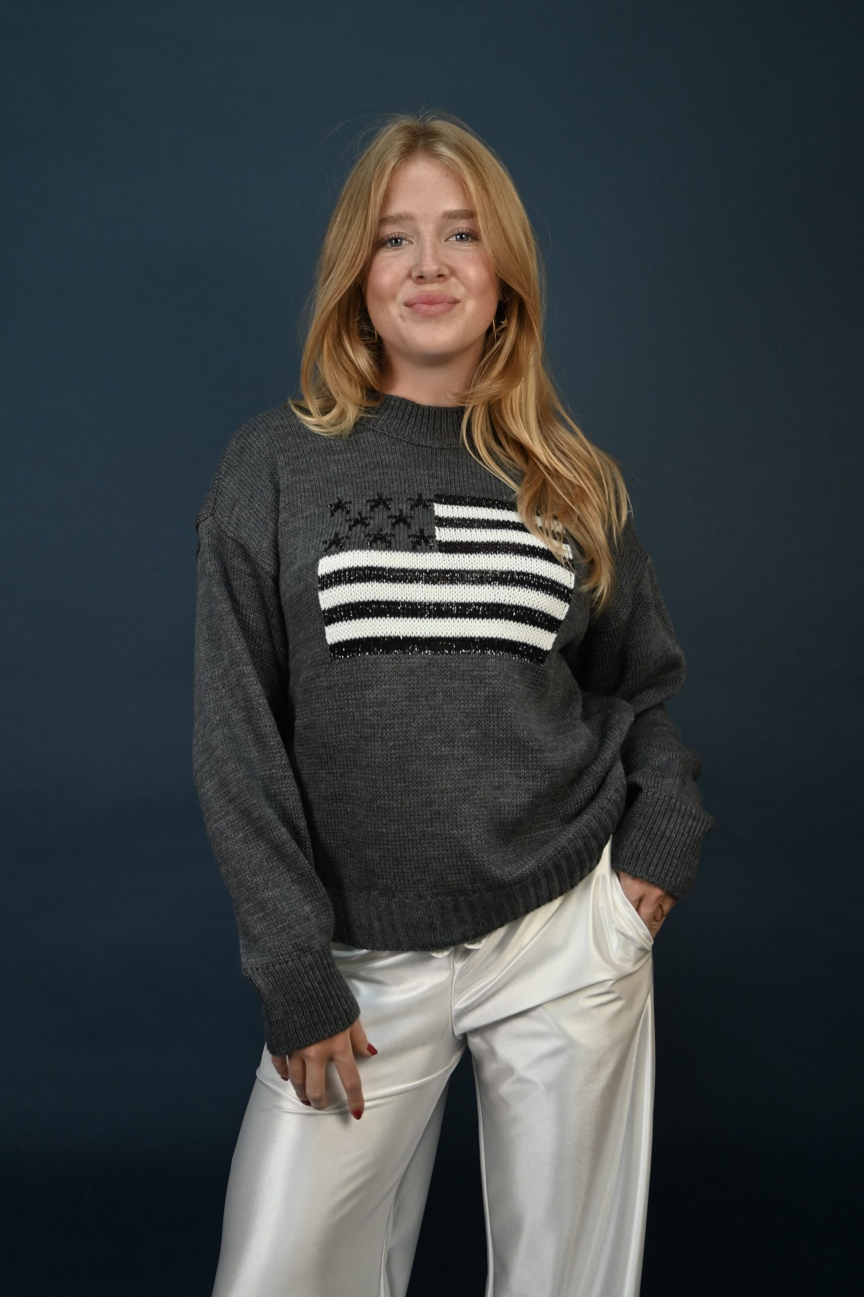 USA sweater glitter grijs Fashiontiger