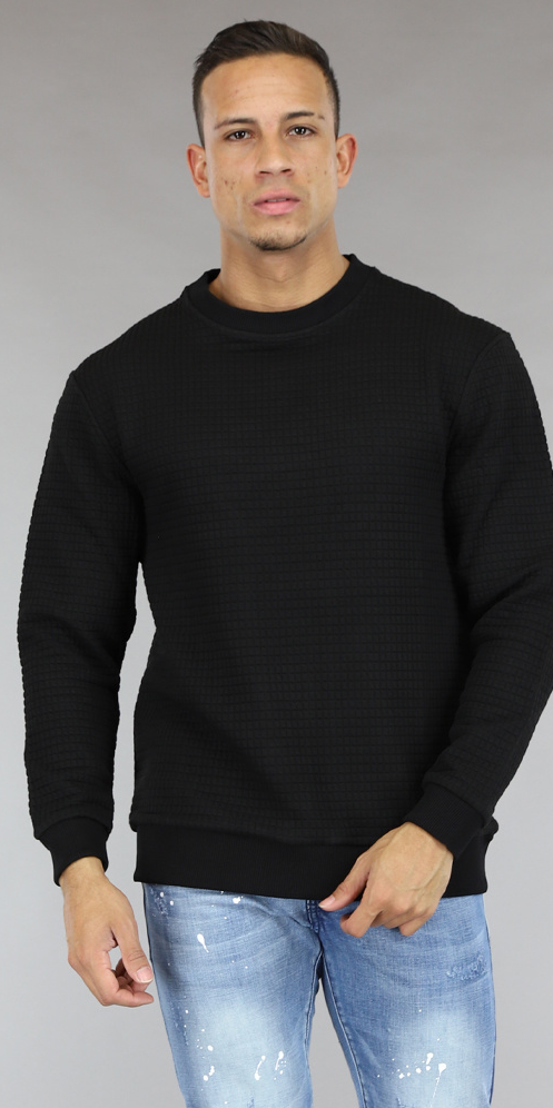 Zwarte Heren Trui met Geblokt Patroon Black