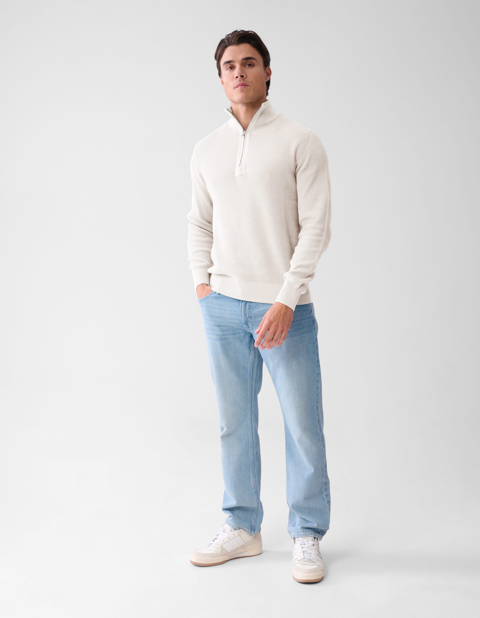 Zipper Trui Gebroken Wit